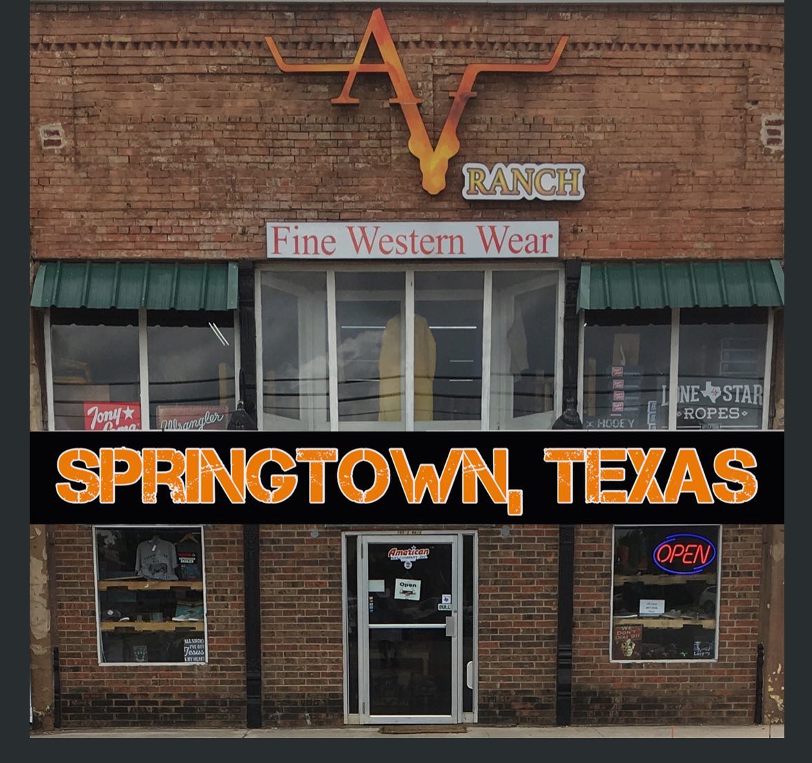 Thanks for checking us out you guys! We are a small, family owned business operating out of Springtown, Texas. We have been selling western wear for over five years now. Growing up on a ranch, western wear became more than just clothes, it became a lifestyle. We are fortunate enough to be operating in such a supportive community, and now, we are in the point of taking our best products and prices, along with our excellent servicem to the rest of the world.